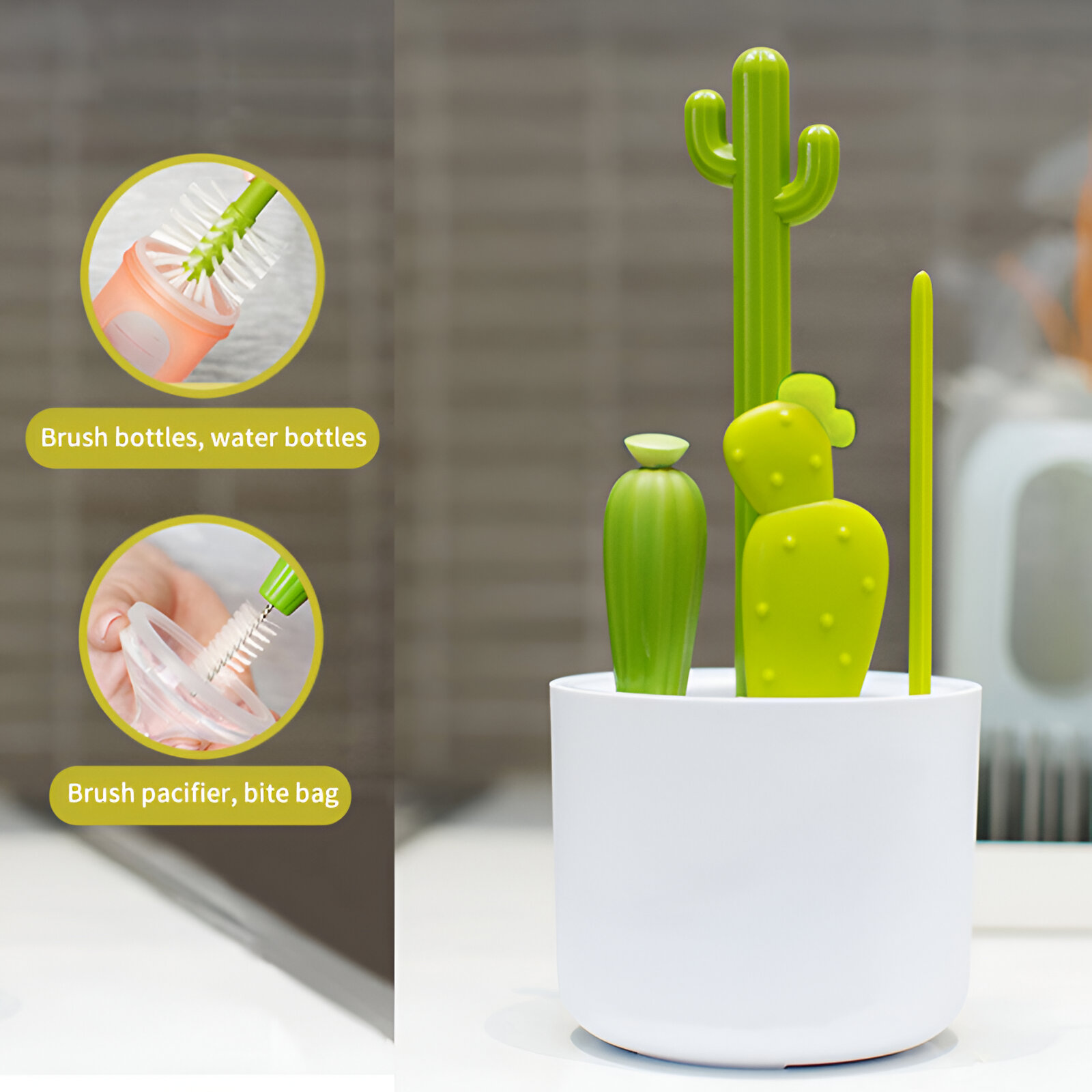 Transform your cleaning routine into a breeze with our charming 4-piece Cactus Baby Bottle Cleaning Brush Set. Designed for efficiency and style, this versatile cleaning kit is perfect for tackling baby bottles, water bottles, mugs, and more. Its adorable cactus design adds a playful touch to your chores, making clean-up time something to smile about!